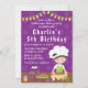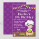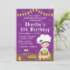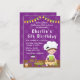 Un lindo muchacho de cabello marrón en el gorra del chef y un delantal verde de un punto de polka se está rodando masa en una mesa que incluye productos horneados de Halloween como una torta de chocolate con escarcha morada coronada con crema y un murciélago, un quequito con rociadores y un plato de galletas. Delante de ella hay una bolsa de tuberías de hielo morado y un mezclador de mano. Gráficos de PrettyGrafik