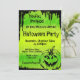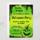Invitación de Halloween para una fiesta de Halloween con calabaza sobre fondo verde. ¡Organiza una fiesta de Halloween para recordar!
