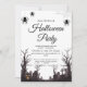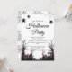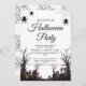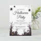 ¡Acepta el espíritu inquietante de Halloween con este inquietante diseño de tarjetas de invitación! Con intrincadas telarañas, arañas colgadas y una escalofriante escena de cementerio con murciélagos y árboles estériles, este diseño establece el tono perfecto para una emocionante celebración de Halloween. Perfecto para invitar a amigos y familiares a una noche de espantosa diversión.