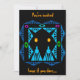 Personalizar fácilmente el texto frontal y posterior de esta invitación de Halloween que presenta una cara espeluznante con ojos dorados y brillantes rodeados por un patrón geométrico cuadrado ornamentado en tonos azules con acentos de verde y rosa. Se coloca sobre un fondo negro para un efecto dramático. La parte delantera dice: Estás invitado. Ven si te atreves... La parte posterior da todos los detalles.