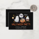 ¡Prepárate para una celebración espumosamente dulce con esta adorable invitación a la fiesta de Halloween! Este divertido y festivo diseño presenta una encantadora línea de personajes acuáticos con un fondo negro clásico. Un fantasma amigable, una sonriente linterna de jack-o' en el gorra de una bruja, y un quequito adorable con topos fantasmas están listos para el fiesta bajo una luna llena con bates amistosos. Esta invitación, salpicada de estrellas y dulces, es más dulce que espeluznante, lo que la hace perfecta para una fiesta de Halloween infantil, un evento escolar o cualquier fiesta de Halloween con amor a la diversión. Solo di "¡Boo!" y prepárate para un momento de asombrosa felicidad.