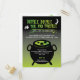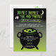 Invitación fiesta de postales con 'Doble, doble trabajo y problemas' en un tipo de letra espeluznante. Esta invitación presenta una combinación de colores negro y verde con un caldero y un diseño temático de brujas. Personaliza esta divertida invitación para una fiesta de halloween para niños o adultos y envía a tus amigos y familia para difundir tu espeluznante evento!