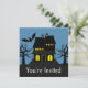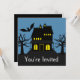 Afortunadamente divertido Spooky Haunted House Halloween Invitation incluye una casa embrujada enclavada entre dos árboles viejos y ensanchados y un murciélago solitario volando en primer plano. Esta fresca invitación de doble cara es una excelente elección para invitar a tus amigos a tu fiesta anual de Halloween. Tan fácil de personalizar, simplemente agrega los detalles de tu festín de Halloween en los campos proporcionados. Haga clic en el botón "Personalizar" para obtener más opciones de personalización.