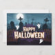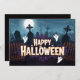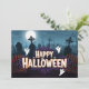 Crea la máxima vibración espeluznante con esta invitación de Halloween que incluye un cementerio y fantasmas iluminados por la luna. (Obras de arte generadas por IA)Invitación lúdica con cráneos y fantasmas, perfecta para tu fiesta de Halloween.