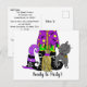 Invitación de Halloween con un reloj personalizado de mano, gato negro, gorra de brujas y telarañas!