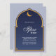 Presentamos la invitación al Iftar del Ramadán de la Luna, diseñada para capturar perfectamente la esencia del mes sagrado del Ramadán. Esta elegante y sofisticada invitación es la manera perfecta de invitar a sus amigos y familiares a unirse a usted para romper el ayuno en este momento propicio. Esta invitación, elaborada con material de primera calidad, presenta un hermoso diseño de luna creciente dorada con un fondo azul profundo, que simboliza la importancia de la observación de la luna durante el Ramadán. La intrincada caligrafía árabe añade un toque de encanto tradicional, mientras que el diseño minimalista y elegante lo hace perfecto para cualquier tipo de celebración. Ya sea que esté organizando un fiesta de Iftar en casa o planeando un gran evento, la invitación de Iftar de Moon Ramadan seguro marcará la pauta para una reunión memorable.