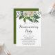 Da la bienvenida a los invitados a tu nuevo hogar con esta elegante invitación de inauguración. Perfecta para una reunión de primavera, cuenta con un diseño floral atemporal con rosas, peonías y crisantemos suaves marfil y blancos, acentuados por delicadas flores de acuarela azul pervinca y exuberante follaje verde.
