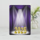 Invitación a la ceremonia de graduación para la clase de 2025 en púrpura y dorado y reflectores.