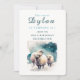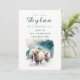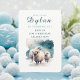 Una tarjeta de invitación de cumpleaños con ovejas bajo la nieve. Para los niños nacidos en invierno. Personalizar este producto agregando la información de su fiesta.
