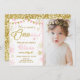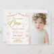 (H) Una manera perfecta de invitar a sus invitados a una fiesta de cumpleaños de invierno en tierra firme, ¡para el primer cumpleaños de su pequeña! Rosa y oro.