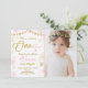 (H) Una manera perfecta de invitar a sus invitados a una fiesta de cumpleaños de invierno en tierra firme, ¡para el primer cumpleaños de su pequeña! Rosa y oro.