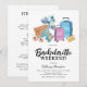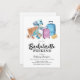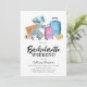 Invitaciones de fiesta de despedida de soltera de vacaciones lindas que incluyen una selección de artículos de viaje de acuarela, incluyendo maletas, cámara, mapa, etc, y una plantilla de fiesta de despedida de soltera elegante que es fácil de personalizar. ¡El itinerario del fin de semana está en la parte posterior!