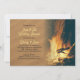 Plantilla de invitación a la hoguera para una ducha de boda. Fondo de arena con imagen de fuego quemada en tarjetas horizontales. El texto de la plantilla es texto impreso en negro con un guión amarillo para el título de la celebración y los nombres de los honorarios.