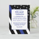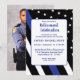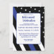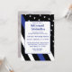 Invitación de jubilación de la policía con bandera de línea azul para celebrar la jubilación de su compañero de trabajo. Agregue su foto en la parte posterior usando la plantilla fácil.
