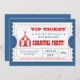 Un diseño de la diversión bajo la forma de boleto de la admisión del VIP en rojo, blanco y azul y la atracción de un elefante lindo encima de la tienda de circo del top grande con todo el acontecimiento Info en un fácil modificar formato para requisitos particulares. ¡Una gran manera de construir el entusiasmo de sus huéspedes pues anticipan el carnaval o la celebración temática del circo que se planea para su hijo o hija!