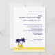 Invitación moderna perfecta para un boda de playa. Características dos palmeras en azules marinos con una puesta del sol amarilla en el fondo y las rayas amarillas en la parte inferior. Grande para un acontecimiento con un tema del océano, del mar o de la playa. Diseño limpio y elegante con una mirada contemporánea. CONTACTO MARLENEDESIGNER SI USTED REQUIERE UN CAMBIO DEL COLOR O DE LA FRASEOLOGÍA.