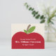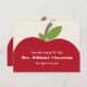 Una invitación simple de la casa abierta para los profesores que ofrecen un ilustracion de gran tamaño de una manzana roja en frente y la parte posterior. Personalice el texto blanco con los detalles de su ocasión.