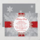 Un hermoso, complejo, copo de nieve lleva a cabo su mensaje y restos sobre cinta roja y un fondo manchado acero-gris.