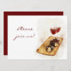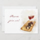 Invitación de la celebración de la cena del vino y del queso que ofrece un ajuste elegante con todo casual con la botella de vino, la copa de vino, los higos, y las uvas.