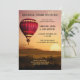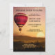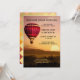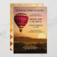 Una invitación romántica de la cena del ensayo que ofrece una pintura de un globo del aire caliente sobre un paisaje soñador en la puesta del sol. La parte posterior muestra un diseño a cuadros impreso oro.