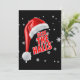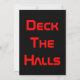 Esta invitación presenta la frase "Deck The Halls" en una fuente de impresión Zing Rust Base con letras de color rojo y contorno blanco bajo un sombrero de Santa Claus con una colección de copos de nieve en el fondo en este estilo y tema del día de Navidad. Impreso en un papel clásico y versátil de 17,5 pt de grosor con un acabado mate sin revestimiento y una textura de cáscara de huevo, fabricado e impreso en EE. UU. con "Deck The Halls" impreso en la parte posterior.