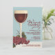Una copa maravillosamente a mano de un vino rojo nestled entre racimos deliciosos de la uva roja un diseño perfecto para un fiesta de la degustación de vinos. La copa de vino se sombrea y sostiene delicado un varietal rojo precioso mientras que las uvas rojas maduras se derraman hacia fuera a través de un fondo azul verde azulado suave. Ofrecido aquí en el papel básico, este diseño también parecería especialmente maravilloso en el lino o el fieltro. Los sellos a juego están también disponibles: