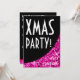 Invitación con un diseño moderno con estrellas diseminadas sobre una estilizada forma curvada de "secuin look" en tonos rosas sobre un fondo negro con 'Fiesta de Navidad! celebremos' escrito en blanco. Se puede usar como fondo para tu propio texto, imágenes e ideas. El texto puede cambiarse fácilmente utilizando la plantilla proporcionada o haciendo clic en el botón "Personalizar" para realizar más modificaciones. Tenga en cuenta que se trata de una imagen de arte digital impresa, que no brilla ni contiene purpurinas o secuencias reales.