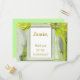 La invitación a la dama de honor floral verde amarillo es un diseño rústico que presenta un tema floral verde amarillento con flores y hojas. Una imagen de madera encierra tu nombre y "¿Serás mi dama de honor?" La parte trasera está cubierta por una sombra verde cal. Diseño de invitaciones: Bodas de Rhoadie Obra de arte temática de otoño: Oberholster Venita