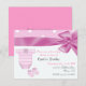 Invitación linda de la fiesta de bienvenida al bebé, con un satén rosado bonito mirando la cinta y el arco. La mitad superior de la invitación se hace en rosa con los lunares blancos y blanco sólido en el área de texto inferior, con los gráficos de un rosado y de un blanco y de botines del bebé. El texto es completamente adaptable adaptarse a sus necesidades, incluso añade más texto en la parte posterior si usted necesita.