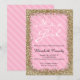 Las rayas y la niña rosadas hermosas de la frontera del purpurina del oro riegan la invitación. Es un chica.