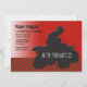 Una invitación deportiva de ATV que ofrece la imagen de la silueta de un ATV y de un ridder contra un fondo rojo de la pendiente y una superficie de la carretera negra y roja chillona del modelo. La tarjeta es fácil de modificar para requisitos particulares con su fraseología, fuente, color de la fuente y opción de seis tipos de papel.