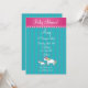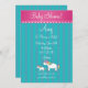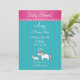 Invitación de la fiesta de bienvenida al bebé del unicornio con las rayas de la turquesa/del trullo/de la aguamarina, frontera rosada de la concha de peregrino con los corazones perfectos para una fiesta de bienvenida al bebé temática del unicornio