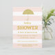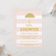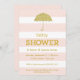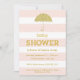 Esta invitación moderna ofrece un paraguas de la purpurina-mirada y un fondo rosado sutil de la raya.