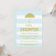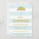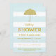 Esta invitación moderna ofrece un paraguas de la purpurina-mirada y un fondo sutil de la raya azul.