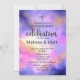Una elegante invitación a participar con una agradable combinación de pasteles y colores brillantes. Un ilustracion colorido y abstracto con una imagen de espacio cósmico en acuarelas rosas, violetas y amarillas. Los colores se mezclan creando formas eetéreas luminosas con pequeñas estrellas brillantes salpicadas por todas partes.