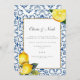 Personalice esta invitación de fiesta de compromiso de azulejos mediterráneos de la costa de Amalfi con sus propias palabras de forma fácil y rápida, simplemente pulse el botón personalizar it para reorganizar y formatear el estilo y la ubicación del texto.