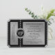 Invitación a la fiesta de cumpleaños de boleto negro y plata con emblema VIP de diamante. Puede cambiar el fondo negro y el color del texto.