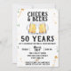 Tazas de cerveza pintadas, "ALEGRÍAS y CERVEZAS", invitación de la fiesta de cumpleaños. Modelo del estilo del Pub en características, saltos, trigo, vidrio de cerveza, la taza de cerveza y los pretzeles traseros. El color y el estilo de la fuente pueden ser modificados para requisitos particulares.