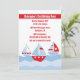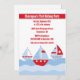 Esta invitación de la fiesta de cumpleaños 5x7 tiene un tema del barco de la diversión. Hay una banda en el top de la invitación, con su información adaptable del fiesta en ella y debajo de ella. En la parte inferior, hay tres barcos de vela que flotan en el agua ondulada. Estudio del cacao