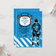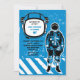 Una invitación realista, del grunge que ofrece un astronauta y un casco "marco" para acentuar el nombre y la edad de su niño. La tarjeta es fácil de modificar para requisitos particulares con su fraseología, fuente, color de la fuente y opción de seis tipos de papel.