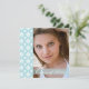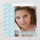 Esta invitación de graduación de 5.25x5.25 modas puede ser utilizada para invitar a los invitados a su ceremonia de graduación o a un fiesta que celebra su graduación. En la parte delantera, a la izquierda hay un borde de diseño de damasco blanco y azul para bebés, con un lugar a la derecha para que puedas personalizarlo con tu fotografía. En la parte inferior hay una banda azul suave con Clase de y el año de su graduación escrito. En el reverso, se puede personalizar el fiesta / detalles de la ceremonia.
