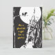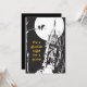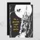 Una imagen de la casa a la antigua, en blanco y negro, con luna llena, árbol y cuervos desnudos es la característica principal de esta invitación a la fiesta de Halloween. El texto de la parte delantera dice "¡Es una noche espléndida para un fiesta!" en naranja. El respaldo negro sólido tiene mucho espacio para la información de su fiesta. Fácil de personalizar y, si desea cambiar el tipo de letra, tamaño, ubicación o color del texto, puede hacerlo eligiendo "Personalizar".