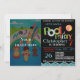 Invitación a la fiesta de la piscina de verano para niños. Situado sobre un fondo de pizarra con elementos coloridos de la piscina de verano, olas de agua azul y bola de playa. Perfecto para una fiesta de cumpleaños afuera con amigos más cercanos.