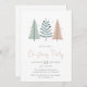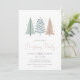 Invite a sus huéspedes con estilo con esta moda minimalista invitación a una fiesta de Navidades con un trío de modernos árboles de inspiración escandinava en suaves tonos verde pastel, verde y tierra. El diseño, limpio y con sutiles detalles festivos, crea un ambiente cálido y contemporáneo, perfecto para celebrar agradables fiestas, elegantes cenas de temporada o modernas celebraciones de Navidades. Personalizable completo con los detalles de su fiesta para que sea único suyo.