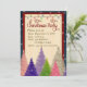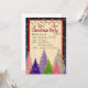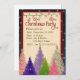 Invitación de la fiesta de Navidad con el fondo rojo oscuro y árboles coloridos con los copos de nieve. Añada fácilmente sus propios detalles y tenga invitaciones festivas de la celebración de días festivos.