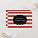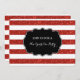 Invitaciones de la fiesta de Nochevieja en glamorosos purpurinas rojos efecto rayas patrón con detalles en blanco y negro. Tenga en cuenta que el purpurina sólo tiene efecto fotográfico.