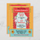 La invitación a la fiesta de cumpleaños de un superlindo títere con un escenario ornamentado con cortinas rojas, señas de marioneta y un hada de bailarina y marionetas de gatos locos haciendo un espectáculo. Espacio para la edad de su hijo en los medallones. Ilustracion dibujado a mano por McBooboo.