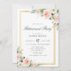 un diseño de marco elegante con flores acuarelas y texto negro. El texto y los colores de esta invitación de fiesta de jubilación pueden ser personalizados.