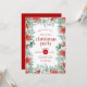 Crea tu invitación de grupo de Navidades. Invite a su invitado a la celebración de las vacaciones con esta hermosa invitación de fiesta que incluye hermosas flores de Navidades enmarcadas con poinsettia y vegetación rojas, una invitación de fiesta con tipografía roja personalizable.