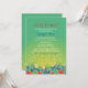 Una invitación del fiesta con una indirecta de un fiesta-tema. Los colores verdes, amarillos, azules y rojos lo hacen feliz y brillante. (FV)